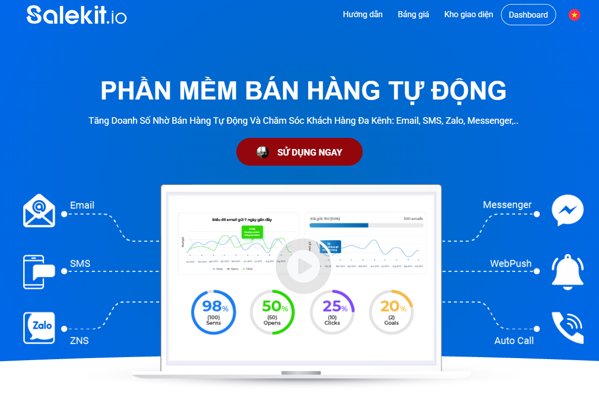 Trong số các nền tảng nổi bật trên thị trường, Salekit.io được biết đến là giải pháp phần mềm quản lý khách hàng và bán hàng toàn diện, phù hợp cho cả mô hình B2B lẫn B2C. Salekit được phát triển với mục tiêu tối ưu toàn bộ quy trình kinh doanh thông qua hệ thống tính năng hiện đại như: giao diện trực quan, công cụ bán hàng thông minh, quản lý tập trung dữ liệu khách hàng, xây dựng quy trình bán hàng bài bản, tự động hóa chăm sóc khách hàng, gửi SMS – Email Marketing và theo dõi hiệu suất kinh doanh theo thời gian thực. Nhờ đó, Salekit.io giúp doanh nghiệp tiết kiệm chi phí, gia tăng doanh số và phát triển bền vững trong môi trường kinh doanh số.