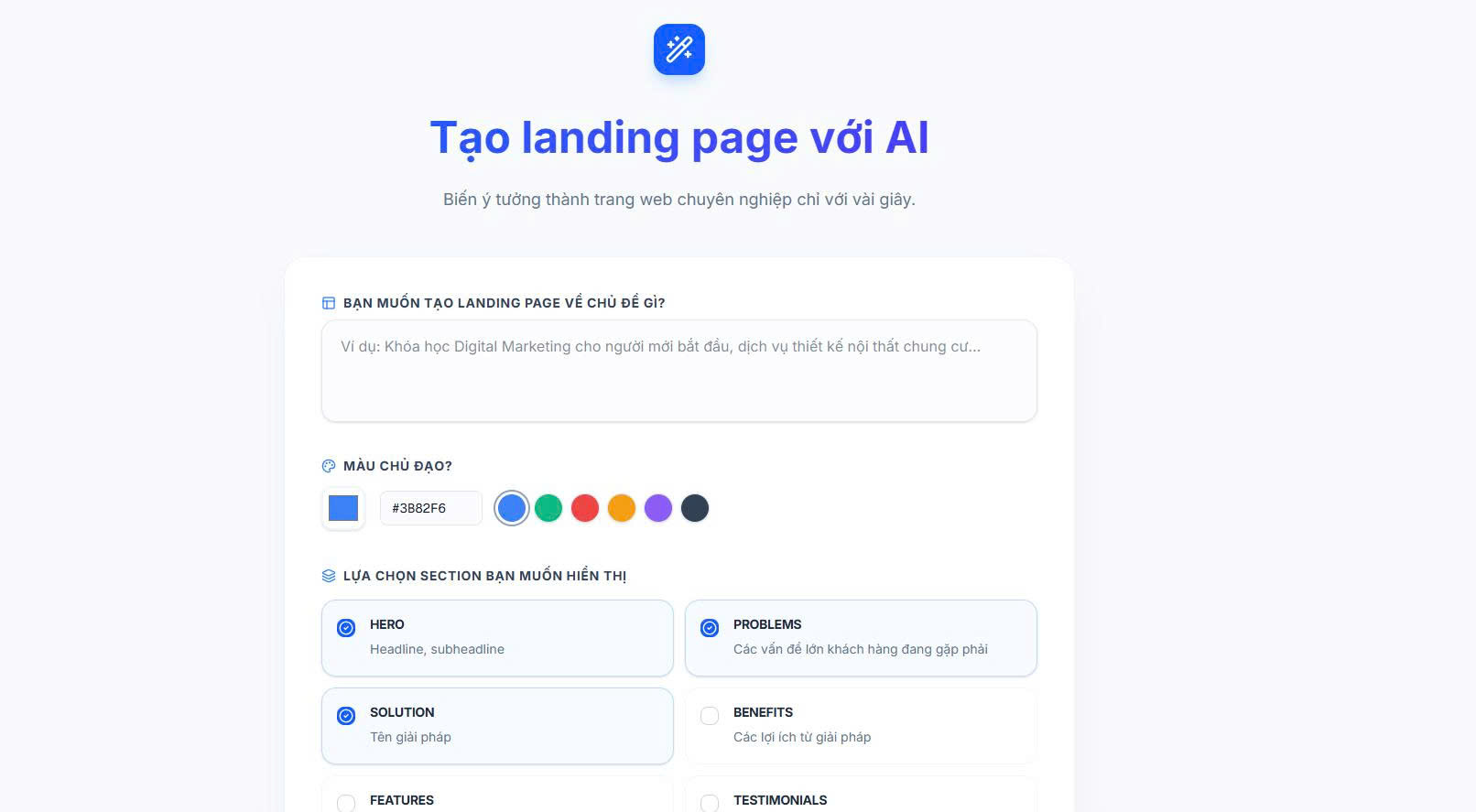 Hoàn toàn không. Đây chính là một trong những ưu điểm lớn nhất của AI Landing Page Builder. Các công cụ này được thiết kế với giao diện trực quan, kéo thả hoặc sử dụng prompt (câu lệnh) đơn giản, cho phép bất kỳ ai cũng có thể tạo ra Landing Page mà không cần bất kỳ kiến thức nào về lập trình hay thiết kế đồ họa.