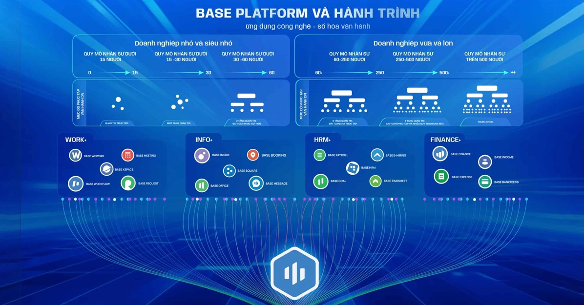 Base.vn là một nền tảng quản trị toàn diện với hơn 60 ứng dụng hoạt động trên nền tảng đám mây, phù hợp với các tổng đại lý hoặc doanh nghiệp VLXD có định hướng phát triển và mở rộng quy mô. Base.vn giúp tối ưu hóa mọi khía cạnh vận hành từ bán hàng, quản lý sản phẩm, marketing, chăm sóc khách hàng đến quản lý nhân sự và tài chính.